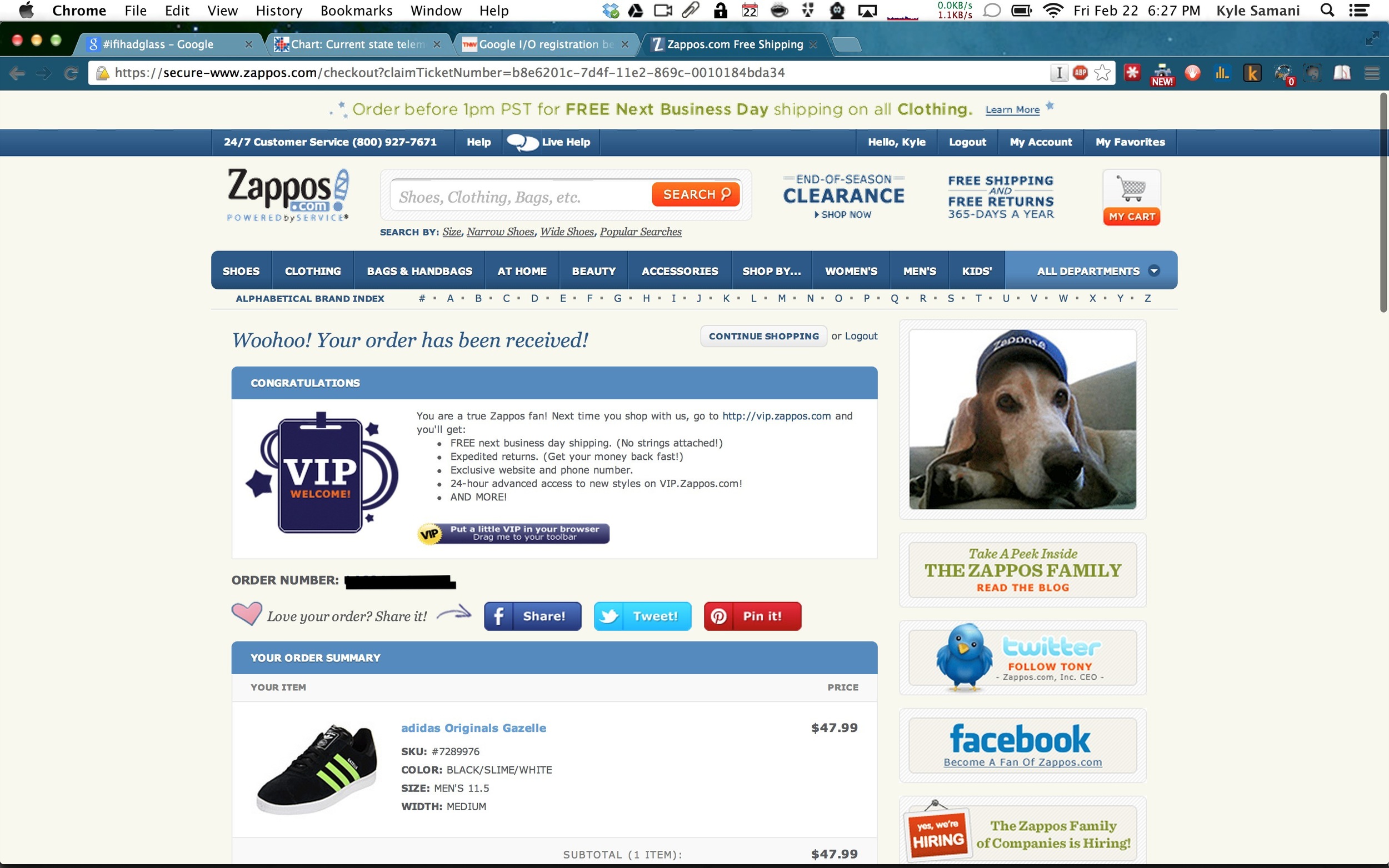 Everything is done right: The big VIP badge, free next day shipping on my next order, sharing options, and even early access to new styles at vip.zappos.com tha makes me feel special.