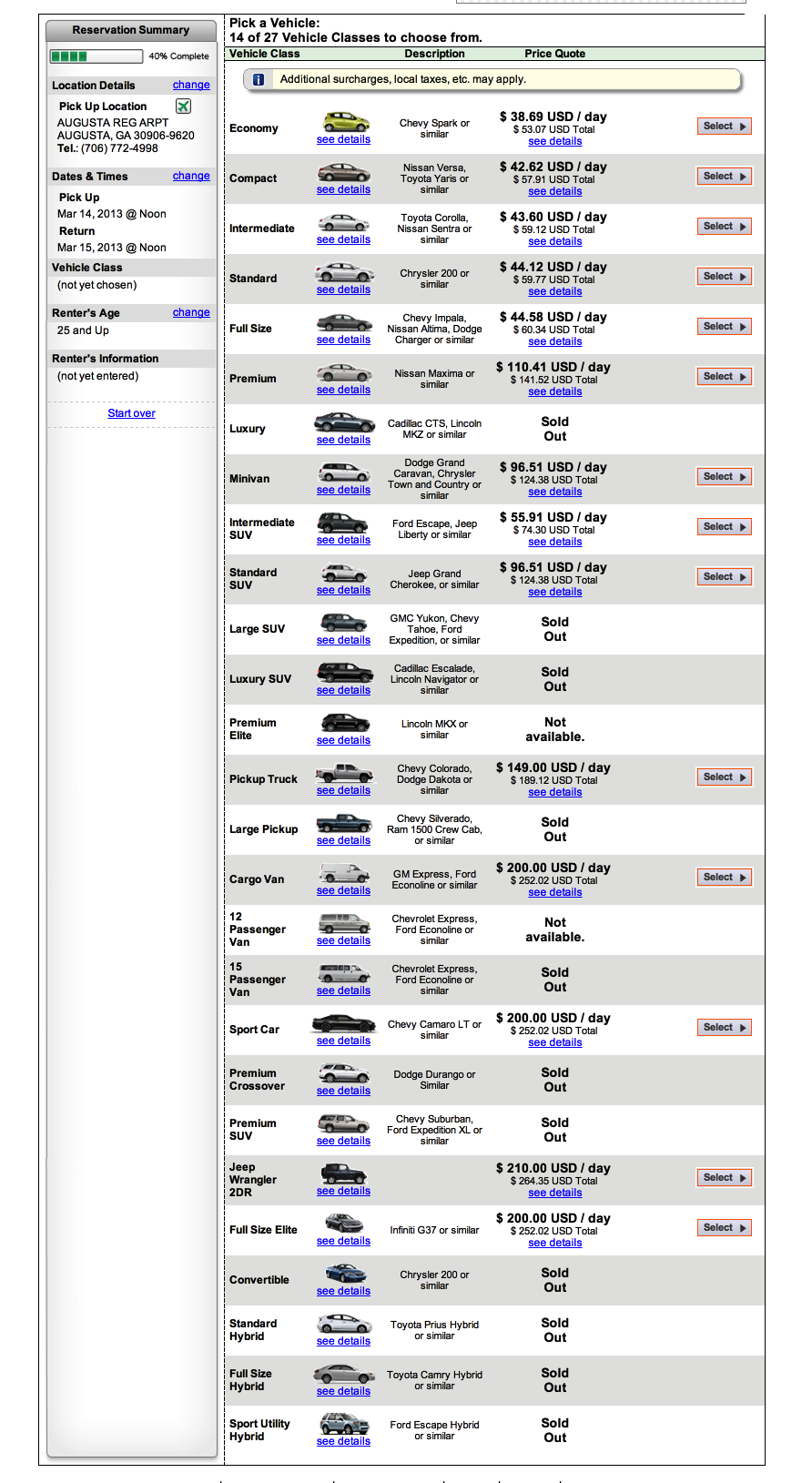 Today I reserved a rental car, and I noticed something interesting. According to Enterprise, the automobile market is segmented into at least 27 different sub-markets. Wow, that’s incredible. I didn’t know there were that many kind of motor vehicles to choose from.